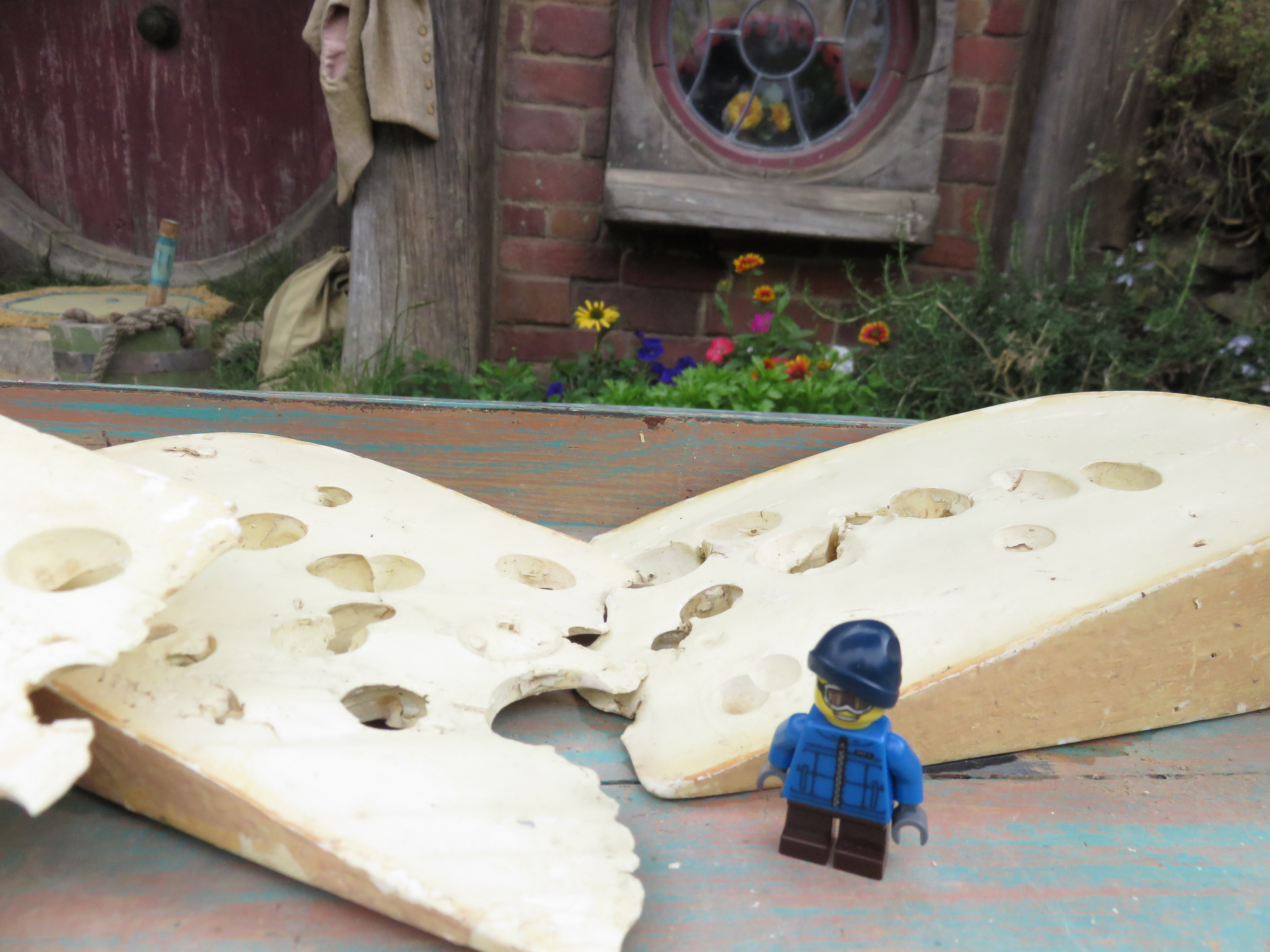 El lugar donde hicieron las casitas era una granja y un día el director de las películas -Peter Jackson- volando sobre las islas buscando una locación para hacer la película, vio un árbol enorme y muy parecido al que describen en la película. Ese árbol está aquí donde fui y entonces hicieron las casitas en miniatura entre los montes y jardines. No les voy a contar mucho para que podamos venir a visitar juntos, pero algo que sí me gustó mucho es que toda la ropa, los trastes etc.. son tamaño chiquito para cuando filman la película y …la casa de Bilbo sí se abre!!!!! ¿Creen que se puede o que no se puede entrar?