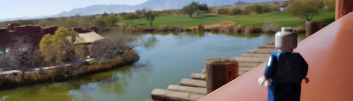 Alrededor del hotel, hay un recorrido como de 5 kilómetros donde puedes ver muchos tipos de cactus y a veces uno que otro conejo, serpientes y dicen que hasta coyotes (por suerte no vi ninguno 🙂 ) pero nuestros amigos estuvieron haciendo travesuras…miren cómo Legui tuvo que posar para la foto.