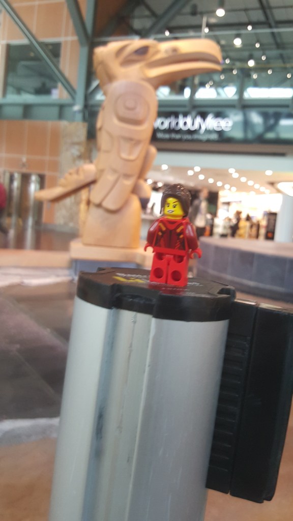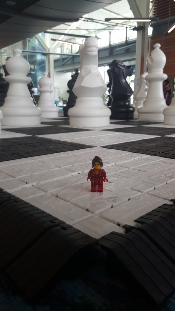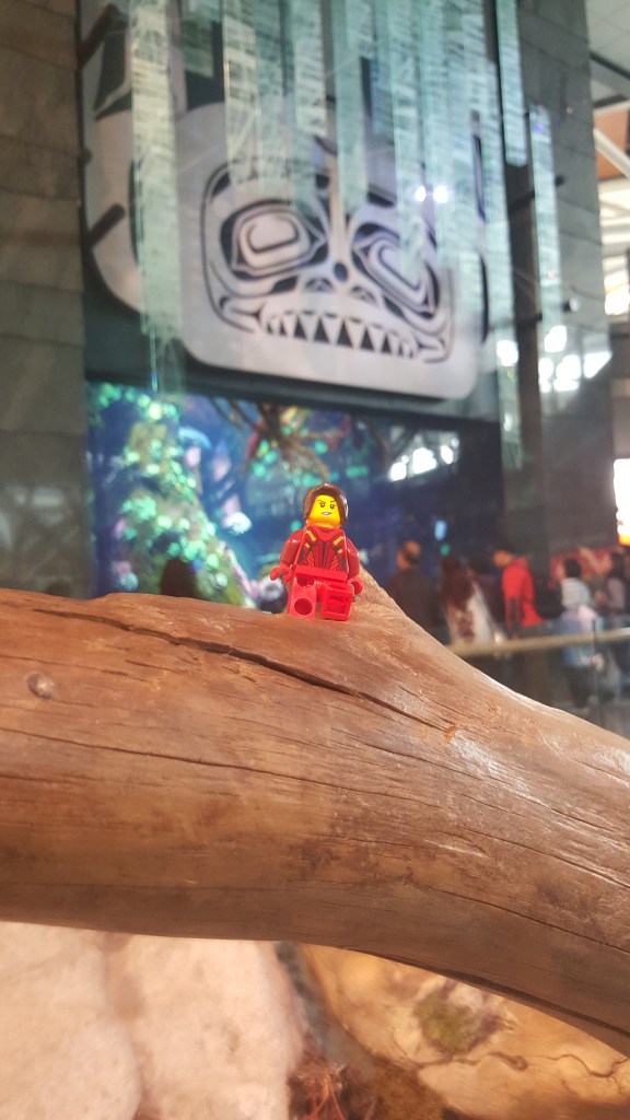 Este viaje fue muy largo (para llegar) y muy corto a la vez. Tuve que viajar desde México a Vancouver en Canadá. Fue una escala de 6 horas pero me dio tiempo de conocer el aeropuerto que tenía unas esculturas de cedro y las instalaciones eran un homenaje a los nativos del Oeste de Canadá. Los artistas de la región aprecian mucho la naturaleza y respetan a los animales de la zona. Lo impresionante era el tamaño de los Tótems y que la mayoría de las figuras están talladas de un sólo árbol. También había una exposición sobre los avances de la aviación mucho más moderna que las esculturas 🙂 . Pero lo que más me hizo extrañarlos – y eso que el viaje todavía no empezaba- fue ver el ajedrez gigante que estaba hasta el final del aeropuerto. Me encanta ver que están empezando a disfrutar el ajedrez y sé que en algún momento les ayudará a la concentración y a las estrategias. No me pregunten cómo saqué la foto del ajedrez porque había muchos niños queriendo jugar y no podían porque había una señora (yo) tirada en el piso sacando la mejor pose de mi Lego guerrera.