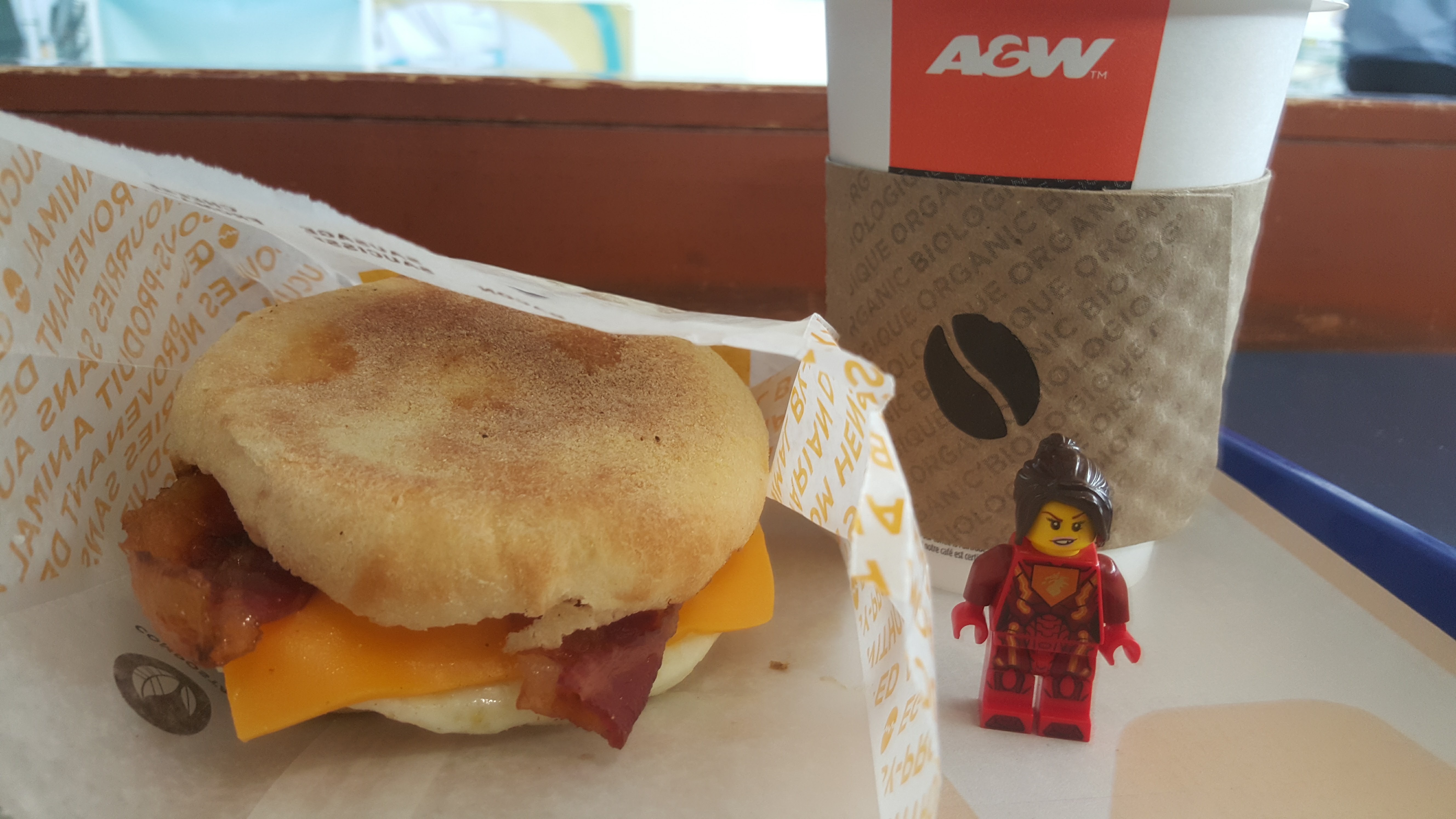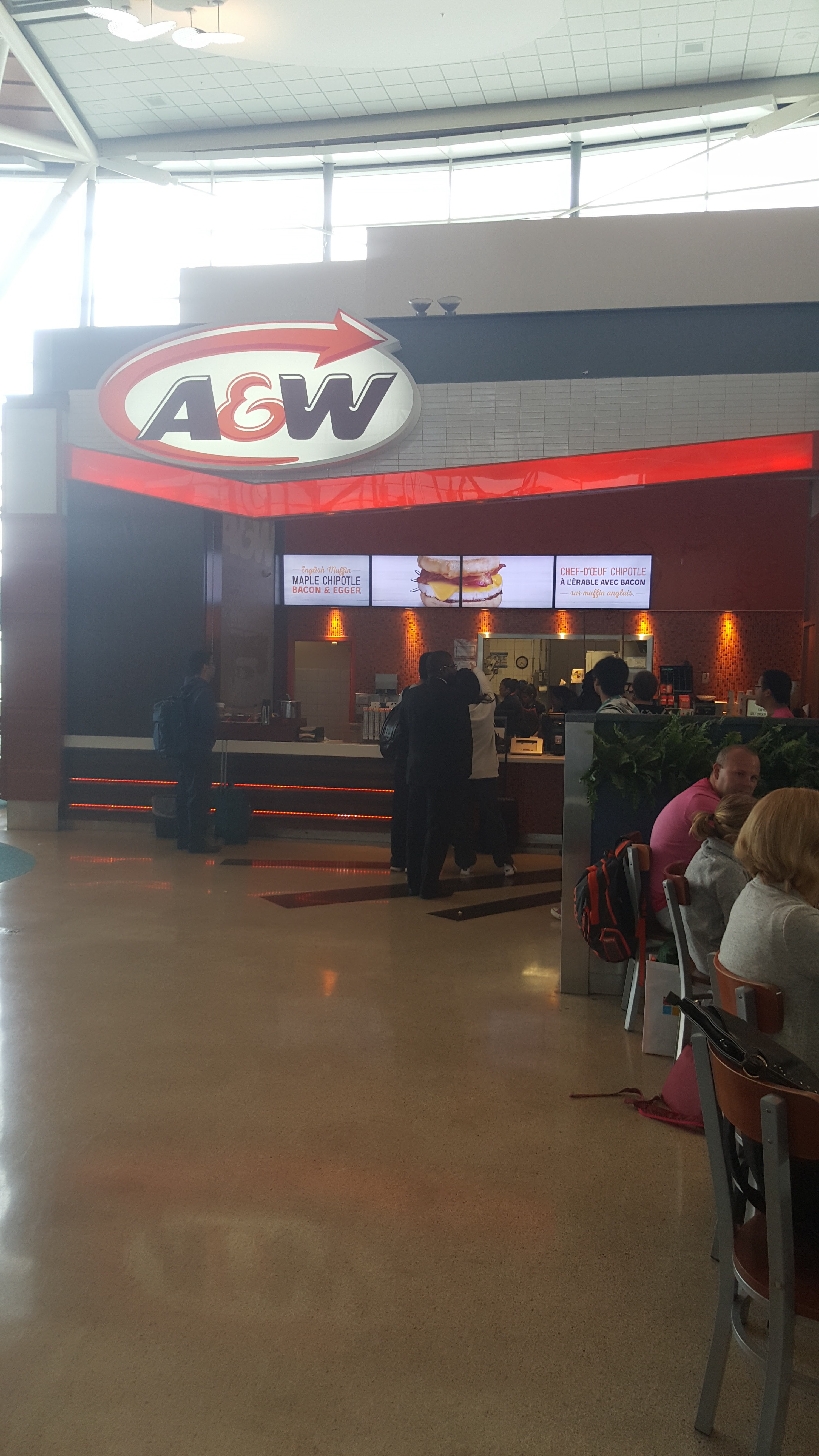 Como fueron tantas horas que esuve esperando para tomar el vuelo a Hong Kong, comí en un restaurante que se llama A&W pensando que era el mismo de Estados Unidos pero resulta que son independientes desde hace 25 años. Cuando yo era chiquita, siempre había un tarro de A&W en el congelador de mi casa y nos daban leche fría. Me desayuné un English Muffin de Huevo, Tocino, Maple y Chipotle DE-LI-CIO-SO y muy Canadiense (por la miel de maple que aunque también se produce en otras partes del mundo, 70% de la producción es de Canadá).
