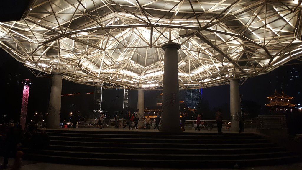 En esta ocasión, y pocas semanas después de Hong Kong, me tocó volver a China y llegué a Chengdu, que es la capital de la provincia de Sichuan. En este mes de noviembre el clima es muy húmedo pero sobre todo, está muy contaminado. En México decimos que hay smog pero no se pueden imaginar lo que es no poder ver a la persona de adelante en la calle. La razón principal es que la ciudad de Chengdu está rodeada de montañas y tiene muchas fábricas que emiten gases. Aún así, en la noche se calmaba ligeramente la contaminación y podíamos salir a visitar varios lugares.