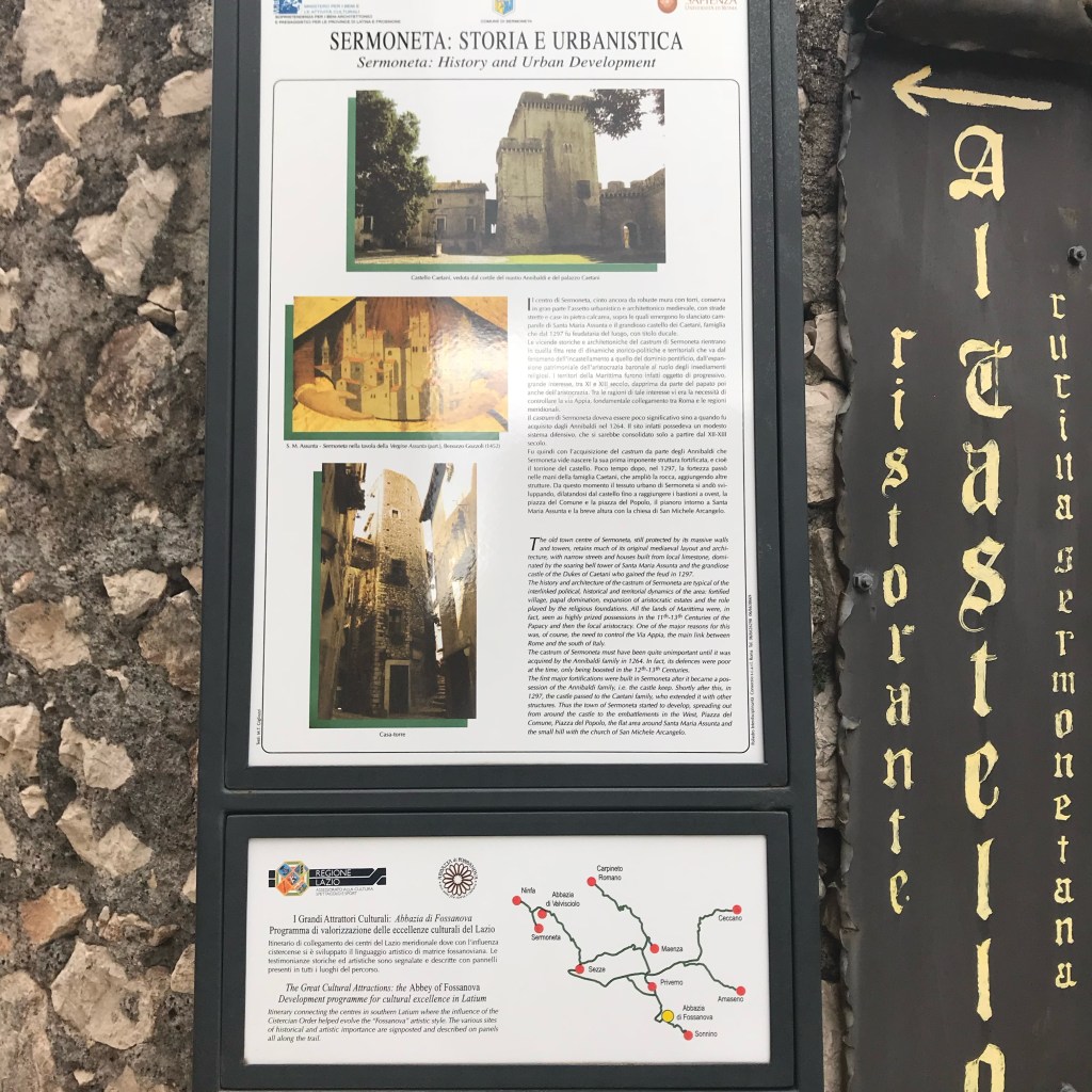 Este lugar fue una sorpresa que no esperaba encontrar. Fui con varios compañeros del trabajo a visitar campos de cultivo de kiwi y de regreso nos llevaron a Sermoneta. Es un municipio muy pequeño de menos de 10,000 habitantes en la provincia de Latina en Italia, como a una hora de Roma.