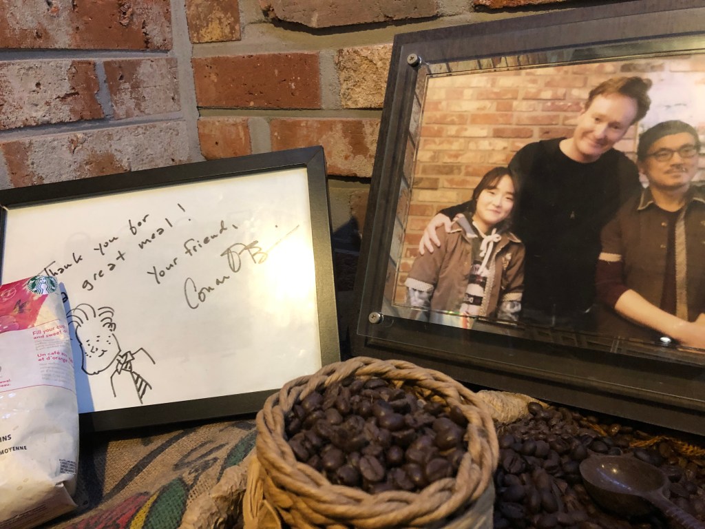 En uno de los días pude ir a una calle muy padre que se llama Insadong y cené en un lugar de Korean BBQ, que es una parrillada con muchas verduras, Kimchi que es una preparación de col y carne muy rica. El restaurante al que fuimos había tenido como visita especial unas semanas antes de Conan O’Brien y resulta que es una súper celebridad acá. A ver si otro día que vengamos nos encontramos a alguien famoso.